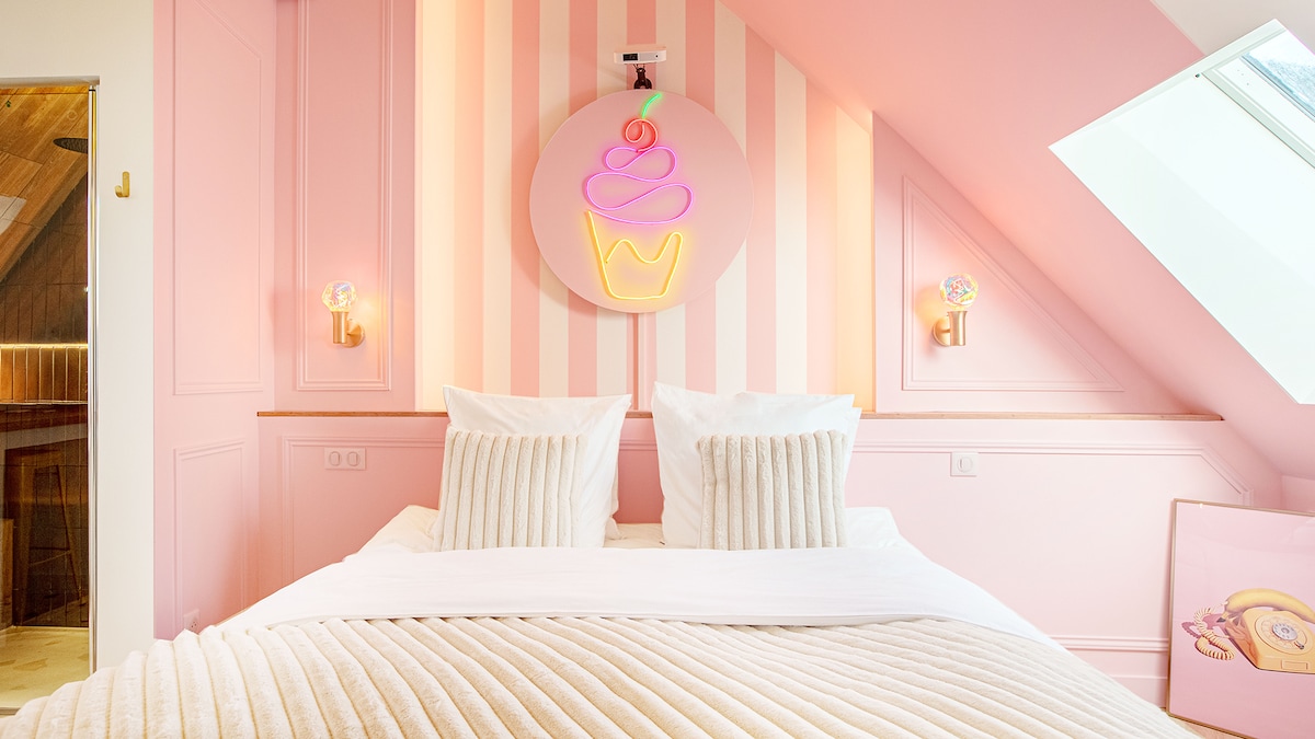 Venez vous régaler, là où le confort est aussi doux et crémeux qu’un milkshake. ☆ un lit king size pour vous sentir telle la cerise au sommet d'un sunday vanille ☆ un matelas haut de gamme et un surmatelas Sofitel pour vous fondre doucement dans la nuit ☆ un vidéoprojecteur pour une soirée cinéma gourmand ☆ un régal supplémentaire, la climatisation ☆ et pour finir, vous pourrez savourer votre parking gratuitement Une fantaisie sucrée pour une expérience unique.