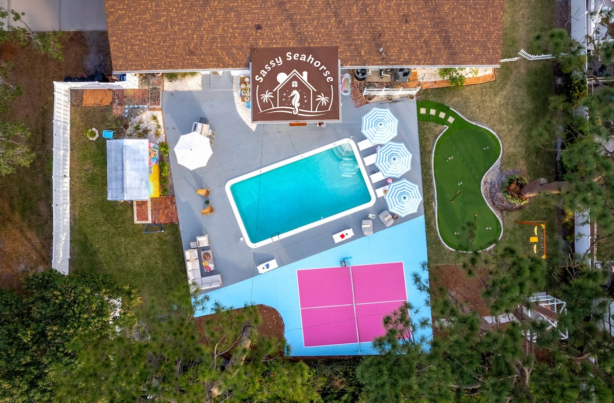 Welcome to our Lite Brite Beach Escape! No matter your age or interest, we have something for everyone! Heated & cooled pool ⭐ Mini-golf ⭐Lite Brite wall⭐Outdoor movie theater⭐ Pong⭐Bikes ⭐Beach gear ⭐Games ⭐Slide & playhouse We invite you to explore your creative and fun side while experiencing the beauty and wonders of Florida on the Gulf Coast! We provide a long list of basic amenities so your stay is seamless and stress-free. Just pack your personal belongings and we have the rest covered!