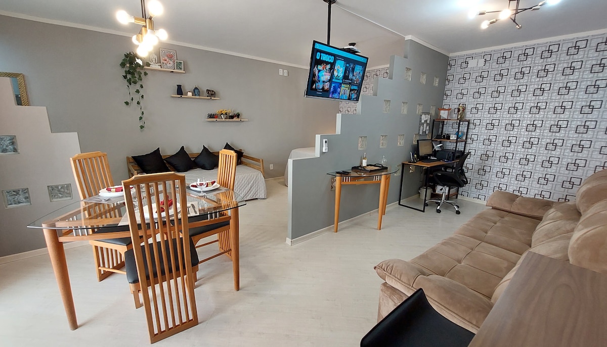 入住這個安靜、精緻、超級舒適和位置優越的地方。 距離醫院/大學、機場和塔博安湖 (Lago do Taboão) 200公尺,距離市中心4分鐘。 靠近一切,巴士就在門口。 公寓家具齊全,配有辦公室(電腦和打印機)、Alexa、有線電視、家電、Queem床和2張沙發床、洗衣機、帶自動門的室內車庫。 全新床單和浴巾。 大樓安全,公寓數量少,適合家庭入住。 歡迎光臨。