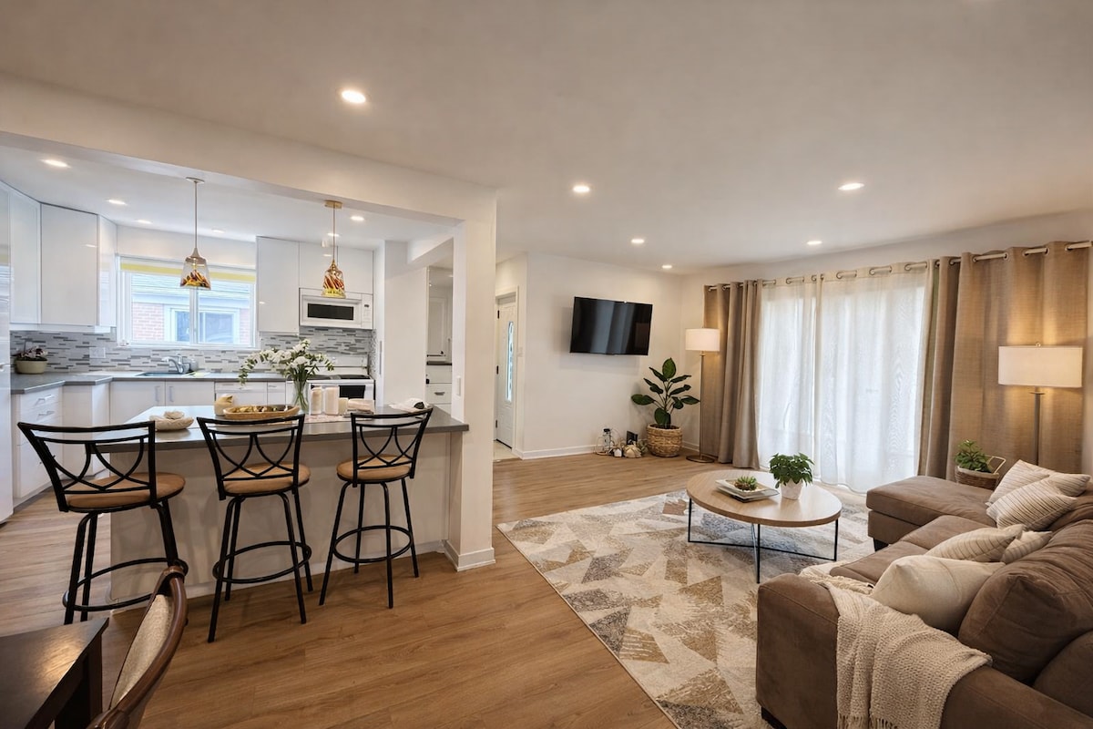 歡迎來到我們現代化、設備齊全的房源,配有寬敞的後院。無論您是出於商務或休閒目的旅行,我們的房源都是完美的基地。地理位置優越,交通便利,距離多倫多市中心和機場僅10分鐘,距離湖濱大道、信用港和GO站僅5分鐘,距離公共交通工具僅幾步之遙。此外,您還會在該地區找到許多當地餐廳、商店、風景優美的步行小徑和美麗的公園。