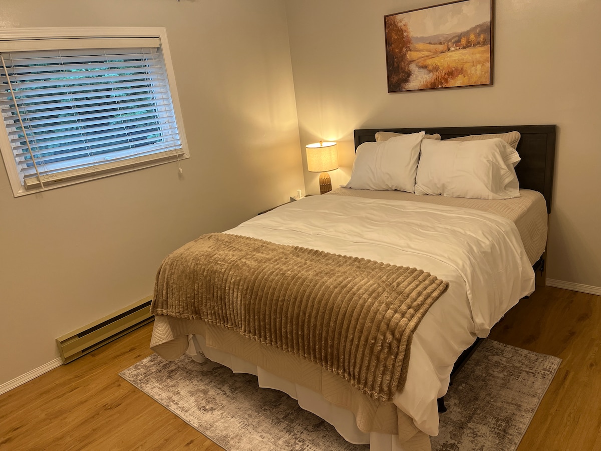 家外之家舒適溫馨,禁止吸煙,設備齊全的1間臥室地下室套房,配有雙人牀,位於安靜的住宅區。 獨立的套房入口通往後院的共用入口。 房東住在樓上 提供WiFi 提供雙人牀尺寸的牀,需額外付費