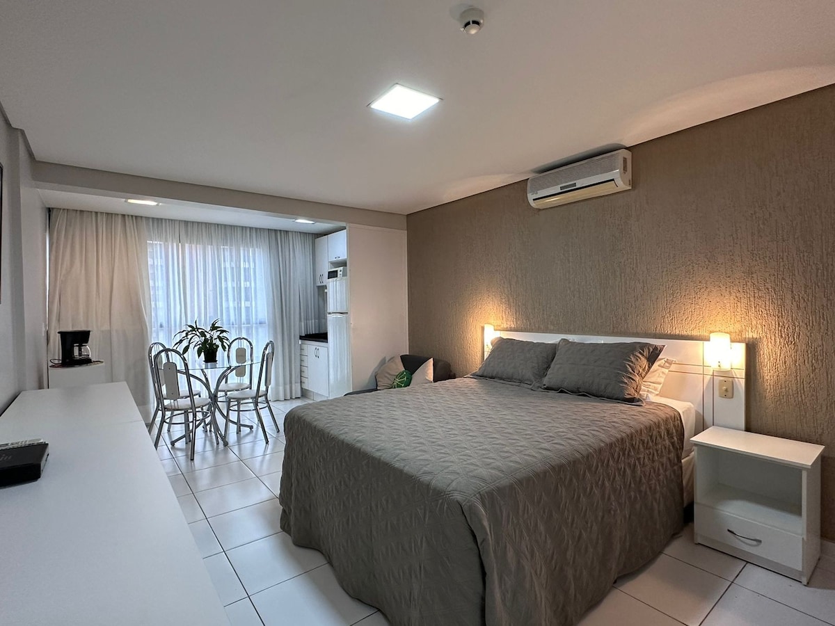 Abrace o estilo neste lugar tranquilo e bem localizado. A unidade "Praiana" é o seu lugar com estilo, tranquilidade e localização perfeita em Brasília. Está localizada no Plano Piloto e fica a poucos passos de Supermercado, restaurantes, farmácia 24h, padarias, salão, cafeterias. Disponibilizamos máquina lava e seca na unidade. É um PEQUENO espaço (18 m²) que possui tudo que você precisa. Cozinha equipada, secador de cabelo, ferro de passar roupa e uma decoração única. Decorada por design!
