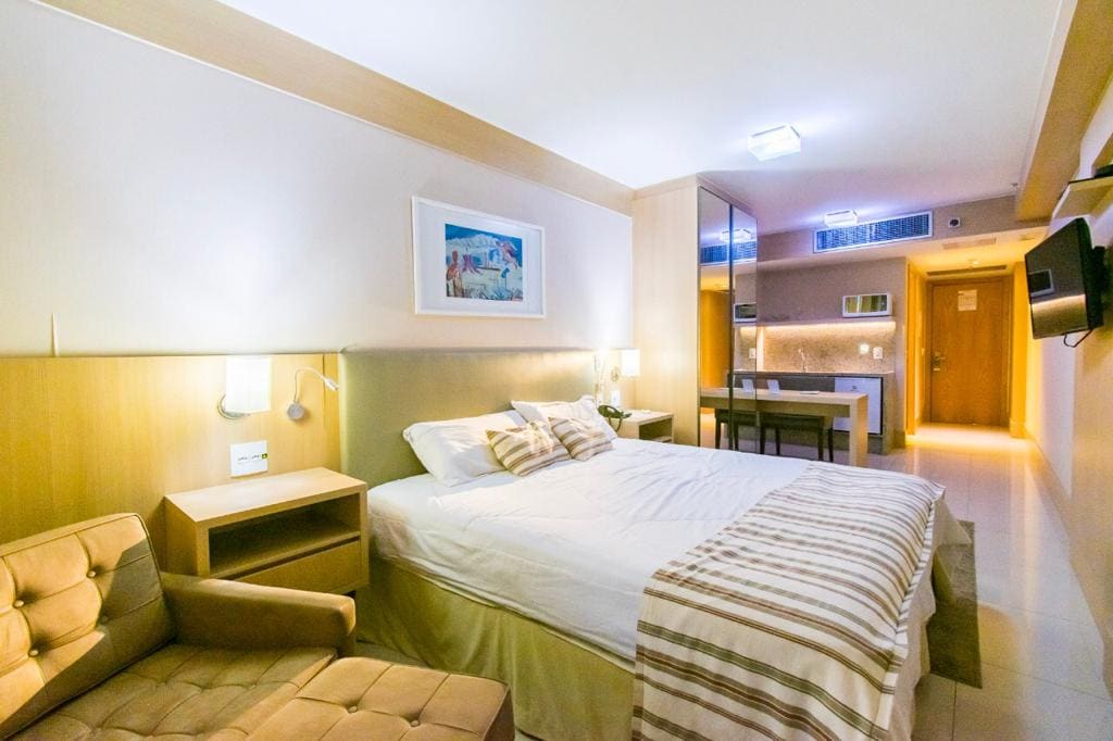 在Cullinan Hplus Premium飯店。 非常新穎和現代化。 地理位置優越!街對面有兩個商場。 很棒的旅遊景點。 迷人、裝潢精美、家具齊全的單位。 位於最高樓層,可欣賞Brasília和Asa Norte的美景。 29平方米豪華套房,配有特大牀。 設備齊全,方便您使用。 窗戶有隔音效果,讓您好好休息。 智能電視。 車庫。遊泳池、健身房、桑拿房和餐廳。 24小時在櫃臺入住。