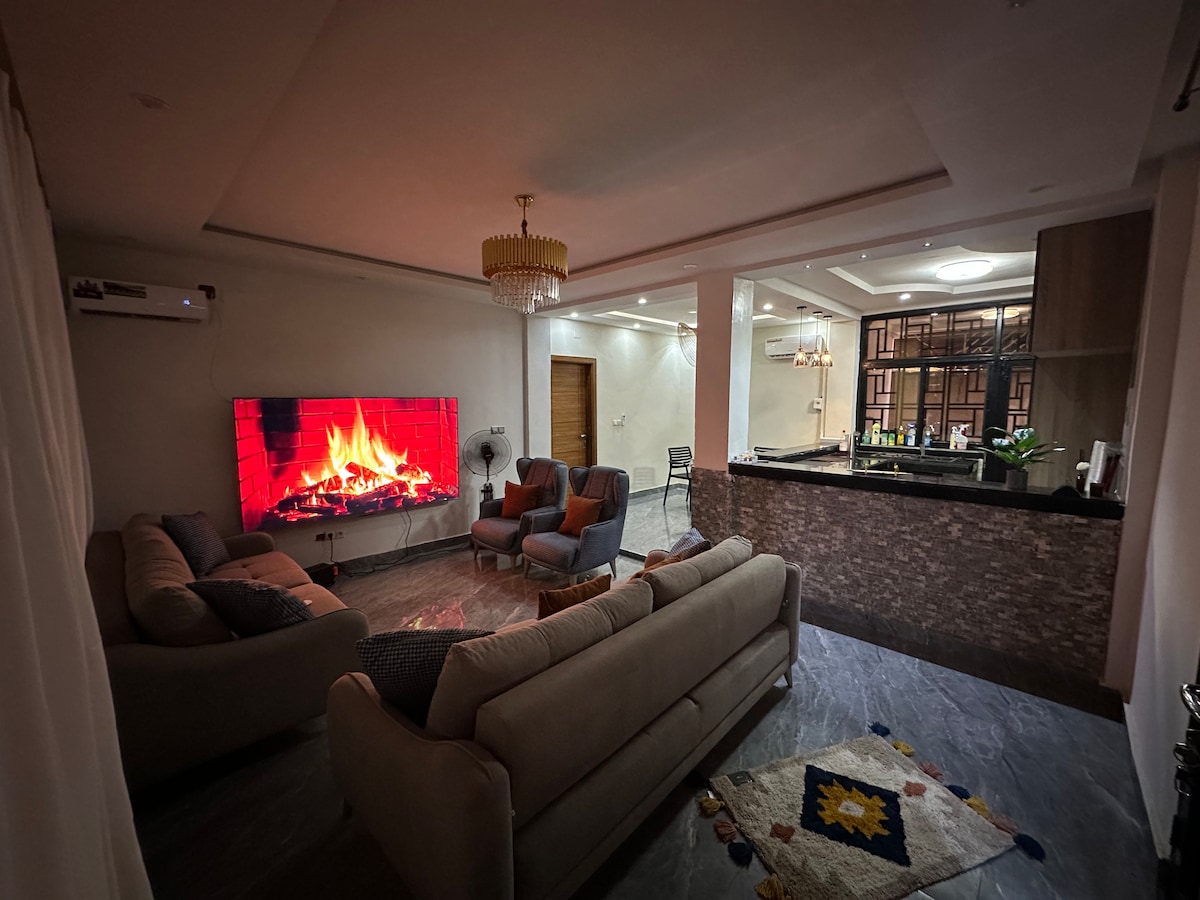 Bienvenue à La Noblesse, un appartement élégant et confortable situé à Kinshasa, offrant une vue lointaine imprenable sur le majestueux fleuve Congo et la ville de Brazzaville. Cet espace moderne est idéal pour les voyageurs en quête de tranquillité et de confort. Profitez d’un balcon panoramique pour admirer le coucher du soleil, d’une cuisine américaine entièrement équipée pour préparer vos repas, et d’un intérieur soigneusement décoré pour une expérience unique.