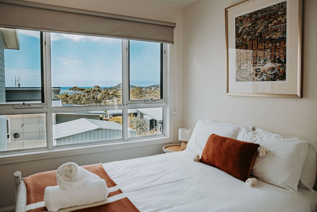 這間舒適的房子距離海灘、岩石泳池、船坡道和網球場僅5分鐘步行路程,可俯瞰火焰灣( Bay of Fires )的壯麗景色,從Eddystone Point到Binalong Bay海灘,從大露臺、主臥室的床和陽光明媚的開放式起居區都可以看到。傍晚日落,俯瞰大海,值得一看。廚房和衛浴空間都已現代化,功能非常齊全。 包括:私人安全庭院,配有小型遮蔭陽台。