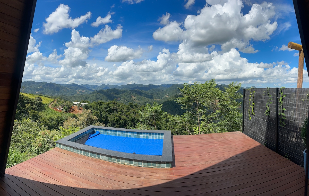 呼吸Capixabas山脈的新鮮空氣,欣賞Pedra Azul的美景。 在重新造林木屋中度過冒險,享受您應得的舒適和安靜。 黃昏時分,一邊欣賞藍石色變化秀,一邊欣賞露臺。 從浸泡式浴缸一邊可以看到藍石( Blue Stone ) ,另一邊是大爐峯( Big Furnace Peak )。 熱水、電磁爐、帶冷凍櫃的冰箱、四面大自然等。