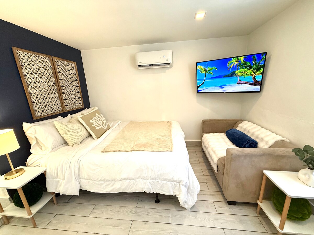 我們的 300 平方英尺單間公寓坐落在一個安靜的街區,距離歐蓋爾藝術區 (Eau Gallie Arts District) 的市中心(酒吧、餐廳、精品店、博物館和畫廊)僅 5 分鐘路程,距離大西洋衝浪區 (Atlantic Surf) 僅 10 分鐘路程,非常適合您的下一次探險之旅。 快來享受我們這間位於市中心卻又安靜的度假屋。 **此房間與主屋相連。 它有獨立入口和室外區域,但與主屋相連。