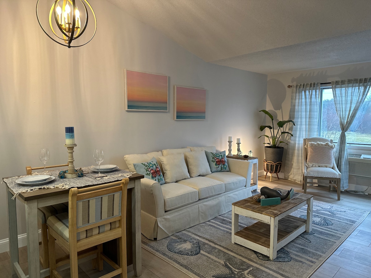海邊公寓,有大教堂天花板! 美麗的私人甲板,位於Ocean Edge高爾夫球場的第五洞! 位於伊頓村內。 兩張加大雙人床,以及拉出式沙發,可讓 6 人舒適入睡。 包括床單!!大廚房配有洗衣機/烘乾機、空調和整套房源的暖氣。 WiFi和三臺配有ROKU裝置的智慧電視。 彈性的日期讓房客可以隨心所欲地住宿,而不是強制性住宿一週。 快來享受吧!