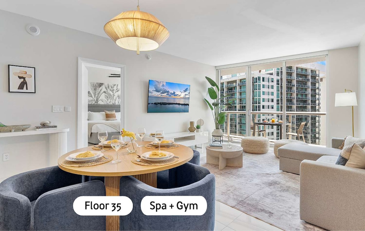 Experience Miami at its finest in our 38th floor one-bedroom condo. Located in Brickell where luxury meets sophistication. Immerse yourself in the sleek and stylish living space, unwind on the private balcony, and indulge in the finest amenities. *Only 2 adults may register for amenities; minors under 18 are excluded from the count. **Pool is open Friday–Sunday ONLY, due to scheduled building maintenance. Starting September the balconies will be shut from the outside and inaccessible.
