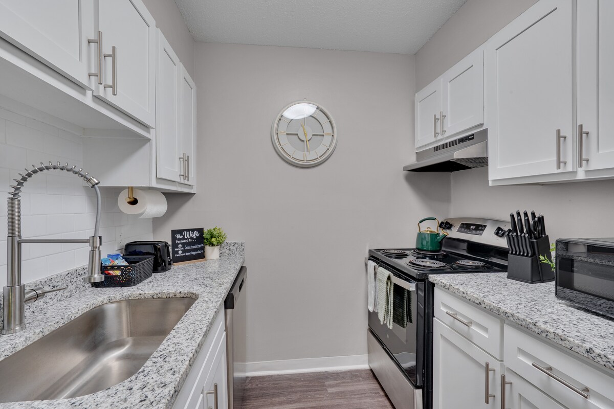 安靜、安全的街區,距離市中心的I-40 1英里,靠近三角洲最好的購物、餐飲和娛樂設施。 PNC Arena、State Fairgrounds、NCSU、Downtown Cary/Raleigh、RDU、TAC Aquatics Center、Wake Med Soccer Park等在4英里內。 *明亮通風的開放式廚房。 * 2 間臥室 - 1 張特大雙人床、1 張雙人床 * 1千兆高速網路,配備WiFi *配備有線電視的智慧電視 *洗衣機/烘衣機 *廚房電器和餐具。 *空氣清潔劑可清除99%的過敏原 *停車位充足。