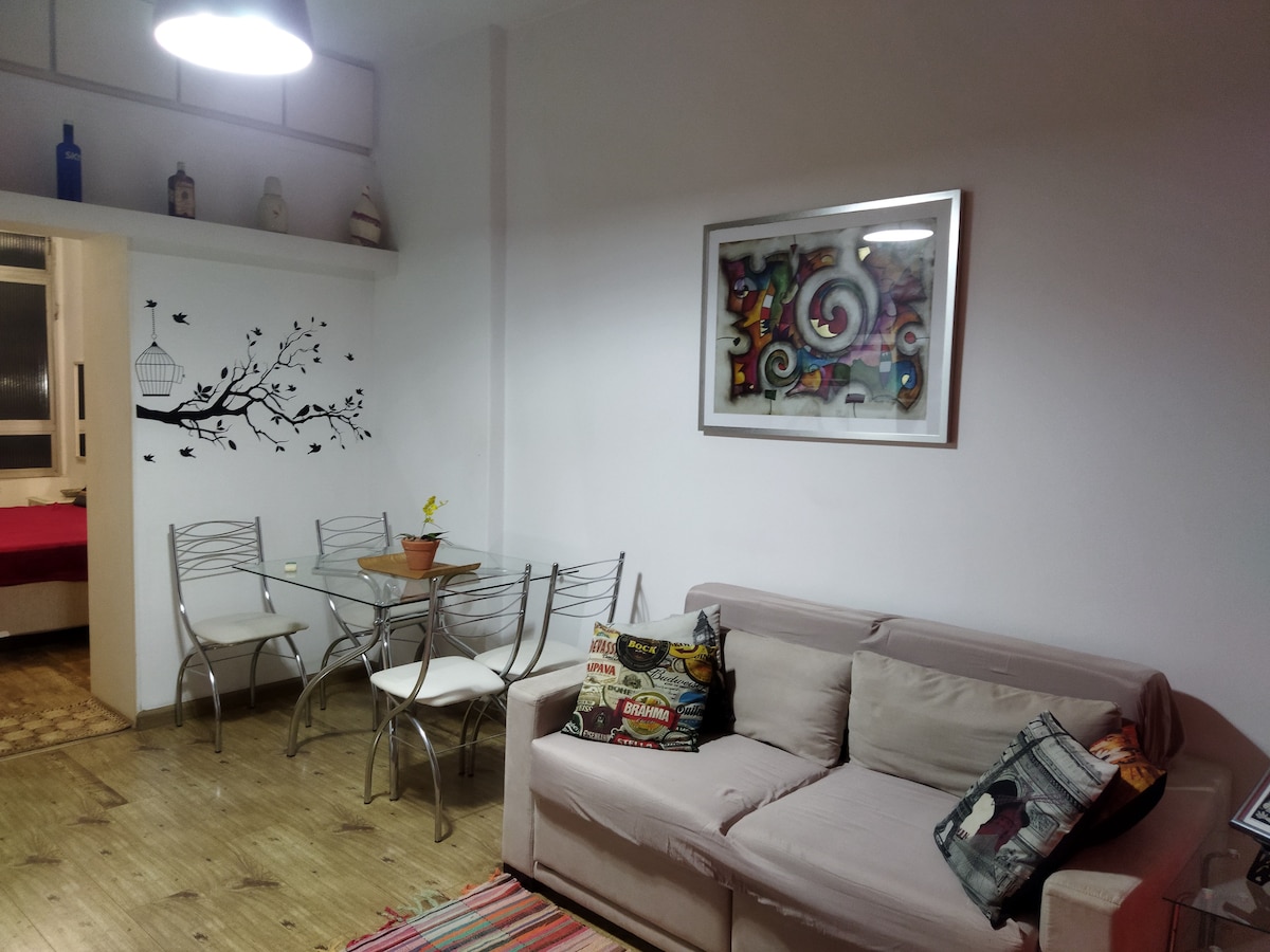 舒適的公寓,景觀壯觀,距離大道2個街區。 Paulista在飯店提供女傭服務、24小時接待處、健身房、遊泳池、桑拿房、高速WiFi。 Mobiliado ,廚房配有基本餐具,電磁爐,微波爐,迷你吧, 50英寸智慧電視。 地理位置優越,距離Trianon Masp地鐵站500公尺,靠近FGV ,有地標、餐廳和醫院。 *餐廳、洗衣店、客房服務單獨支付。 *入住時間為下午3點/退房至上午11點