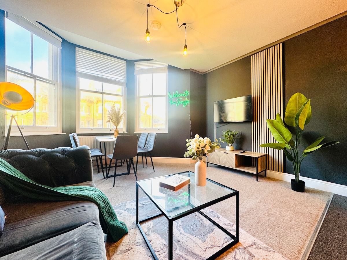 大型時尚的中央Hove公寓,配有私人花園,位於美麗的維多利亞海濱建築的高架一樓,可直接欣賞海景和Hove草坪的景觀。 公寓剛剛裝飾,配有古董鏡子、水晶吊燈、全新淺色沙發、加大雙人床、雙人床和蓬鬆毛巾。 淋浴間是新的,配有Fired Earth大理石瓷磚和巨大的淋浴頭。 地理位置完美,距離商店和餐廳僅幾分鐘路程。