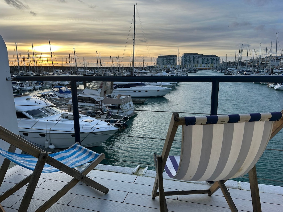 我很自豪地介紹我在布萊頓瑪麗娜村( Brighton Marina Village )的水畔,全新翻修的單間臥室古怪房子。房子包括一間夾層臥室、免費停車位和陽光充足的全寬露臺,您可以坐下來欣賞船隻航行和日落。 房子不僅在水邊,而且獨特地位於英吉利海峽,鄰居有船、魚和鳥! 碼頭村(marina village)就是這樣,門口就有各種酒吧、餐廳、商店、保齡球、電影院和超市。