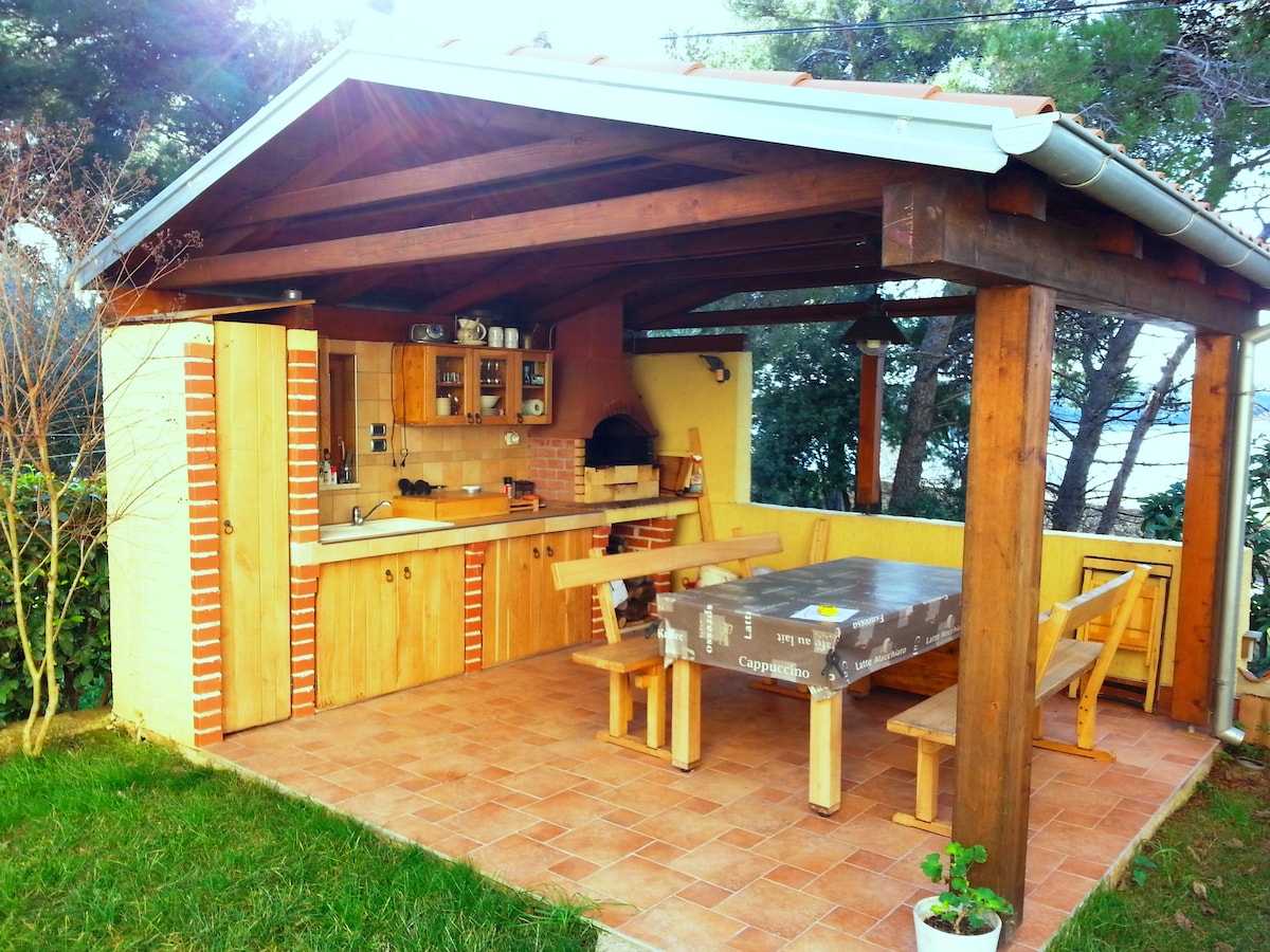 Amazing location, just on a beach - 5m from the sea. House is 55sqm, offering 2 bedrooms, sofa beds, kitchen, bathroom & terrace right on sea cost. It can host up to 5 guest. Wi-Fi, Cable TV, Private parking. Fazana town center just 400m away.