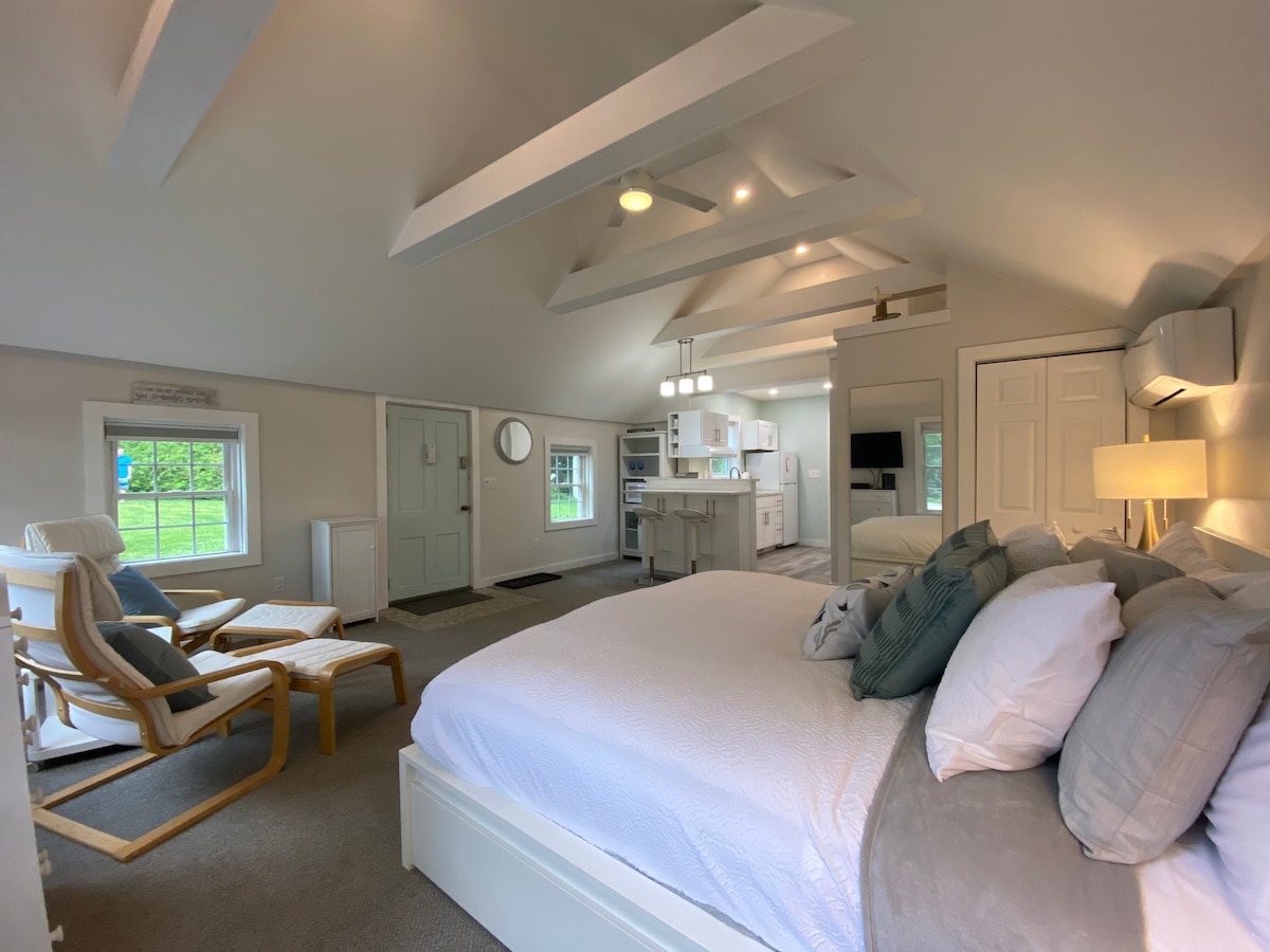 Looking for accommodations by the sea? Welcome to the Salty Dog Carriage House overlooking the Sakonnet. Two bedrooms, lounge area, bath and deck with views of water and marina. The kitchenette has all the essentials: microwave, toaster, griddle, coffee maker, refrigerator, dishes, glasses & utensils. There are TV's in every room. Sip your morning coffee and enjoy the sunrise. Stroll to the jetty to see the boats. Beaches, restaurants, golf, shopping, wineries, brewery nearby. Built in 2022