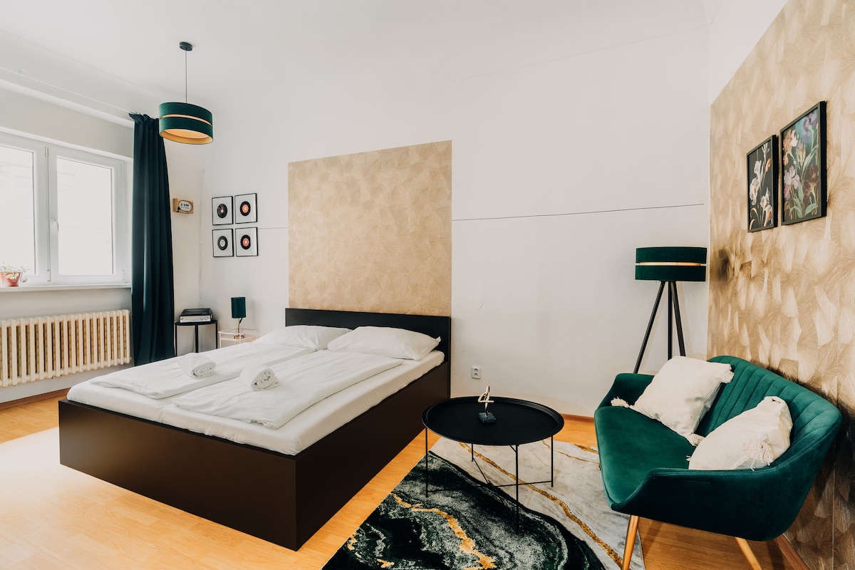 PASÁŽ KOLIŠTĚ是布爾諾市中心(Mahen劇院280公尺)優雅、新裝修的多功能建築,靠近國際巴士和火車站。 對我們所有房客來說,這是具有戰略優勢的。 公寓採用流行藝術風格設計,設備齊全,讓您感覺像在家一般舒適、安全:)。 我們強調潔淨、安全和友善的溝通。 早餐和早午餐選擇根據菜單而定。 我們還有 11 間公寓可供選擇,請聯絡我們!