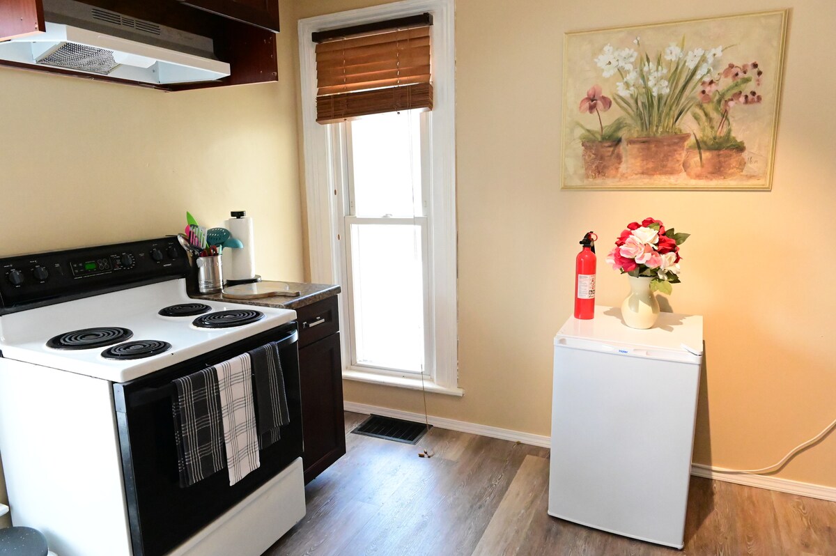 時尚且私密的公寓,有自己的入口,靠近SUNY Brockport、Strong West、當地餐廳和Erie運河。 設有2間臥室,配有舒適的標準雙人床、辦公或學習用的書桌和Roku電視。 享受設備齊全的廚房,配有Keurig、法式咖啡機和滴漏式咖啡機。 輕鬆的數位自助入住和溫馨的裝飾,非常適合度假或長期住宿。