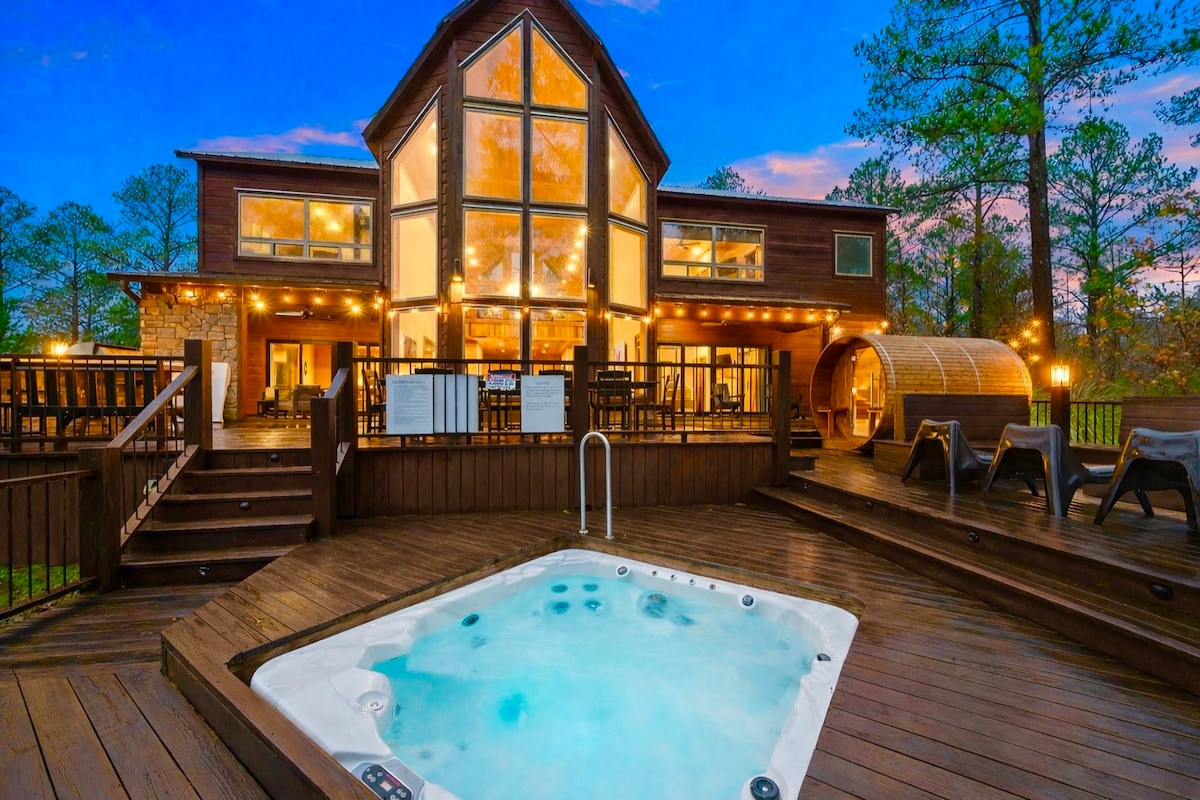 Escape to the Lazy Lariat in Hochatown—Broken Bow’s ultimate luxury cabin retreat. Featuring a heated pool, putt putt, firepit, outdoor bar, full fitness center, barrel sauna, cold plunge, ping pong, and a western saloon with arcade games, pool table & shuffleboard. Families love the immersive kid loft cabin. Perfectly located near Beavers Bend & Hochatown fun, this stylish stay blends adventure, relaxation, and unforgettable memories. Book Lazy Lariat for your next Broken Bow getaway!