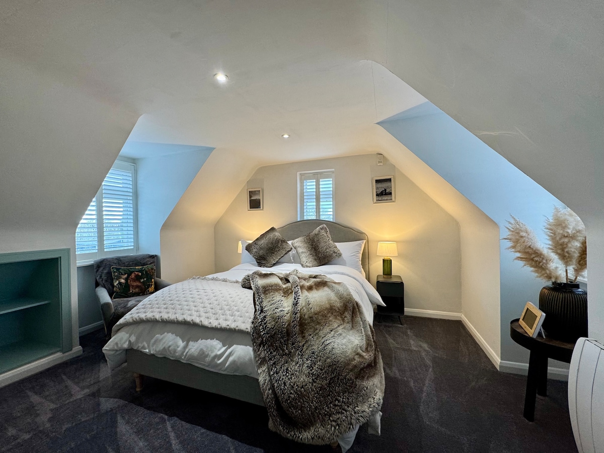 Old Dairy已翻新,乾淨、明亮和溫馨。臥室裝飾中性,配有燈具,如有需要,晚上可提供更微妙的照明。這張床是加大雙人床,配有鴨絨和羽絨被和枕頭。有一張雙人沙發和一臺帶DVD播放器的平板電視。浴室寬敞且乾淨。