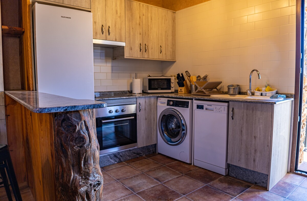 這是一個農村空間,由三個修復的haystacks組成,保留了該地區的典型建築。 他們存放石牆和木樑。 它們包括兩間加熱臥室、浴室、廚房和一間配有壁爐的餐廳。 在戶外,我們有一個綠色區域,有3000米、車庫、燒烤和百年樹木。 一個沒有光污染的空間,您可以享受寧靜,遠離喧囂和喧囂,接觸大自然。