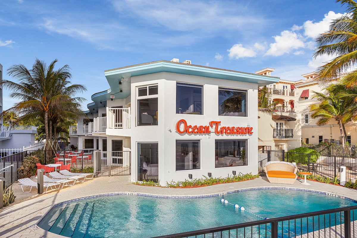 海洋套房( Ocean Suite )是新翻修的完全現代化的單臥室套房,提供加大雙人牀和雙人拉出式沙發,可欣賞美麗的海景。 它包括臥室、浴室和客廳,配有設備齊全的小廚房,配有迷你冰箱、爐臺、水槽和微波爐。 海洋套房位於房源的一樓,可供2-4人舒適入住。 我們提供牀單和毛巾、盥洗用品和客房清潔服務,確保您在住宿期間盡可能放鬆身心。 我們距離Lauderdale by the Sea市中心不到一個街區,步行即可抵達無數餐廳、酒吧、冰淇淋店、冰淇淋店等。 我們相信您一定會愛上您在海洋寶藏的住宿!