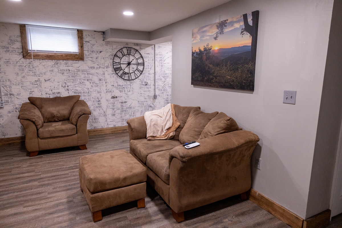 獨立、乾淨、舒適的地下室公寓單位,有獨立入口: •距離歷史悠久的列克星敦(VMI、W&L)17分鐘 •就在I-81和I-64旁邊 • 距離藍嶺公園大道10分鐘 •距離天然橋(和野生動物園) 20分鐘 • 距離 SVU 5 分鐘 • 2 間房間、1 張雙人床、1 張雙層床(全尺寸/雙人) •提供停車位 •免費洗衣機/烘乾機(最近更新的單位- 2022年9月12日) • 60 吋 Roku 電視