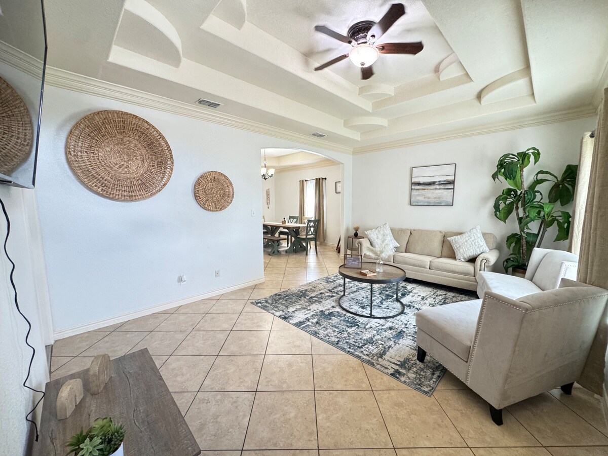 A fully renovated modern farmhouse with an XL pool (with slide) sitting on a breathtaking resaca. Enjoy two living room areas, three gorgeous bedrooms, and an office. Plenty of dining space with breakfast nook, formal dining room and bar. Located just a few blocks from the Sunrise mall, shopping centers and a short drive to South Padre Island / spaceX.This luxurious elegantly designed home is equipped for families of all types and includes games and home theatre options for entertainment. *PS4