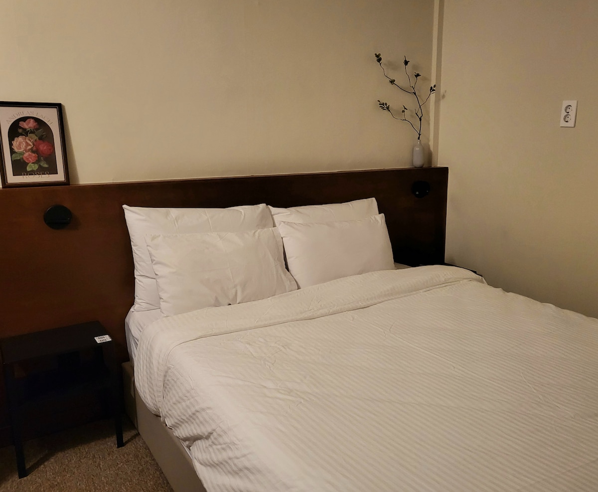 這是一間單人房,配有1張超級單人床。 使用獨立衛浴。 我們致力於提供乾淨的空間,讓您可以在舒適的床墊和舒適的床上用品上舒適地休息,幫助您在完全休息和療癒的空間中睡個好覺。 您可以感受到獨特的室內裝潢的時尚感,您可以體驗舒適的床上用品和舒適的客廳。 毗鄰忠正路,您可以在住宿期間享用各種各樣的當地著名餐廳,也靠近遊樂和酒精區,我們提供行李寄存服務,讓步行的客人可以舒適地遊覽光州。