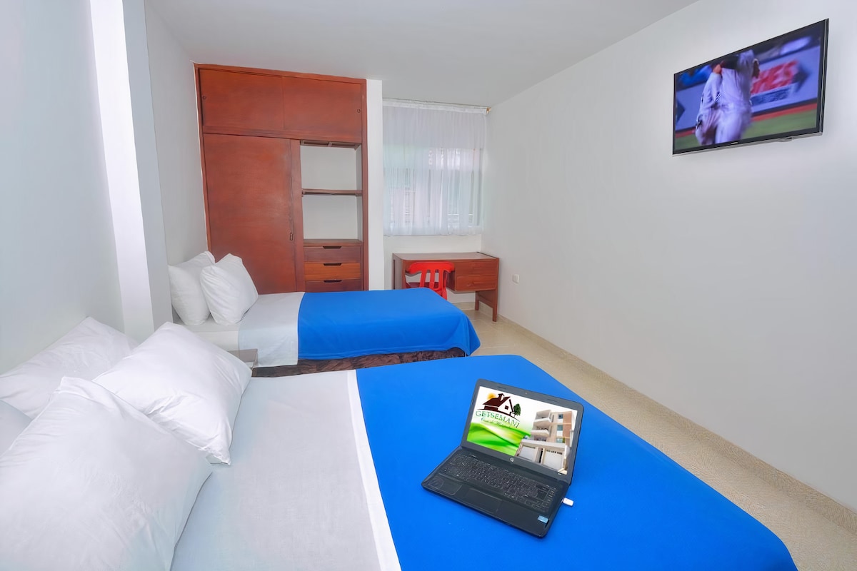 Disfruta de una habitación amplia con 2 camas dobles, ideal para grupos, familias o amigos. El espacio es cómodo, ventilado y pensado para tu descanso. Podrás acceder a zonas comunes como cocina equipada, comedor, sala con TV, lavadora y una mesa de ping-pong. Si necesitas parqueadero, avísanos con anticipación. Además, la ubicación es ideal📍a 4 min del Centro Comercial Outlet Único, 10 min del Cacique y 15 min del Caracolí, con la calma de un vecindario tranquilo 🌿 Te esperamos!
