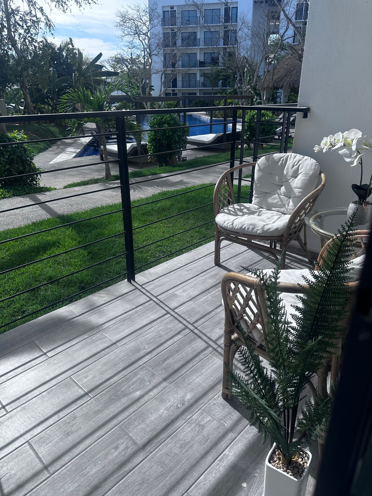 Disfruta de tu estadía en un acogedor y moderno departamento ubicado frente a la alberca, dentro de un fraccionamiento tranquilo y familiar en tondoroque Nayarit Ideal para familias, parejas o viajeros que buscan comodidad y buena ubicación. El departamento cuenta con dos recámaras 2 baños sala comedor y cocina equipada una lavadora , sercas de súper mercado a 5 minutos de playa bucerias y vidanta a media hora de Puerto Vallarta y el aeropuerto