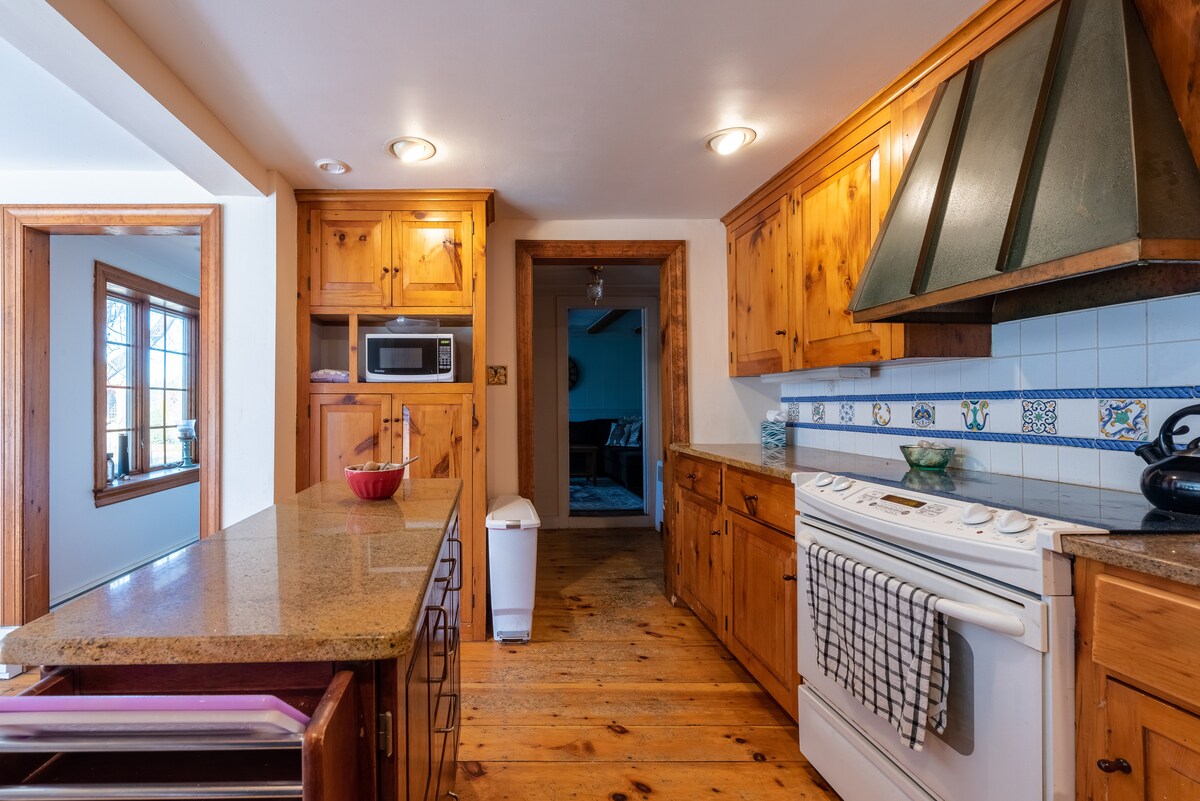 這座迷人的1789 Stone Farmhouse位於New Hope和Doylestown之間,佔地32英畝。這間房子結合了舊石頭的魅力和所有現代便利設施,如WiFi、串流電視、全功能廚房和華麗的戶外露臺,配有巨大的燃木壁爐。如果您選擇帶寵物,我們的紐芬蘭犬Madison和聖伯納犬Odin歡迎您的寵物。