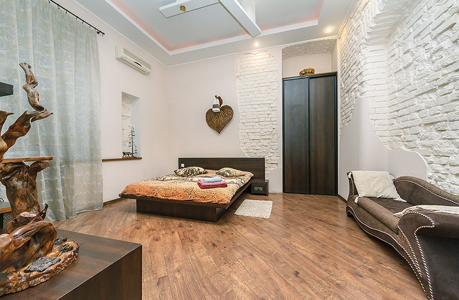 This is magnificent studio apartments with modern design interiors in loft style. The convenient location and unique design of the apartments will give you an unforgettable experience. The apartment is equipped with everything necessary for a comfortable stay. The main advantage of the apartments is their location in the business and cultural center of the capital. There are many shops, cafes, restaurants and a convenient transport interchange in five minutes from the house.