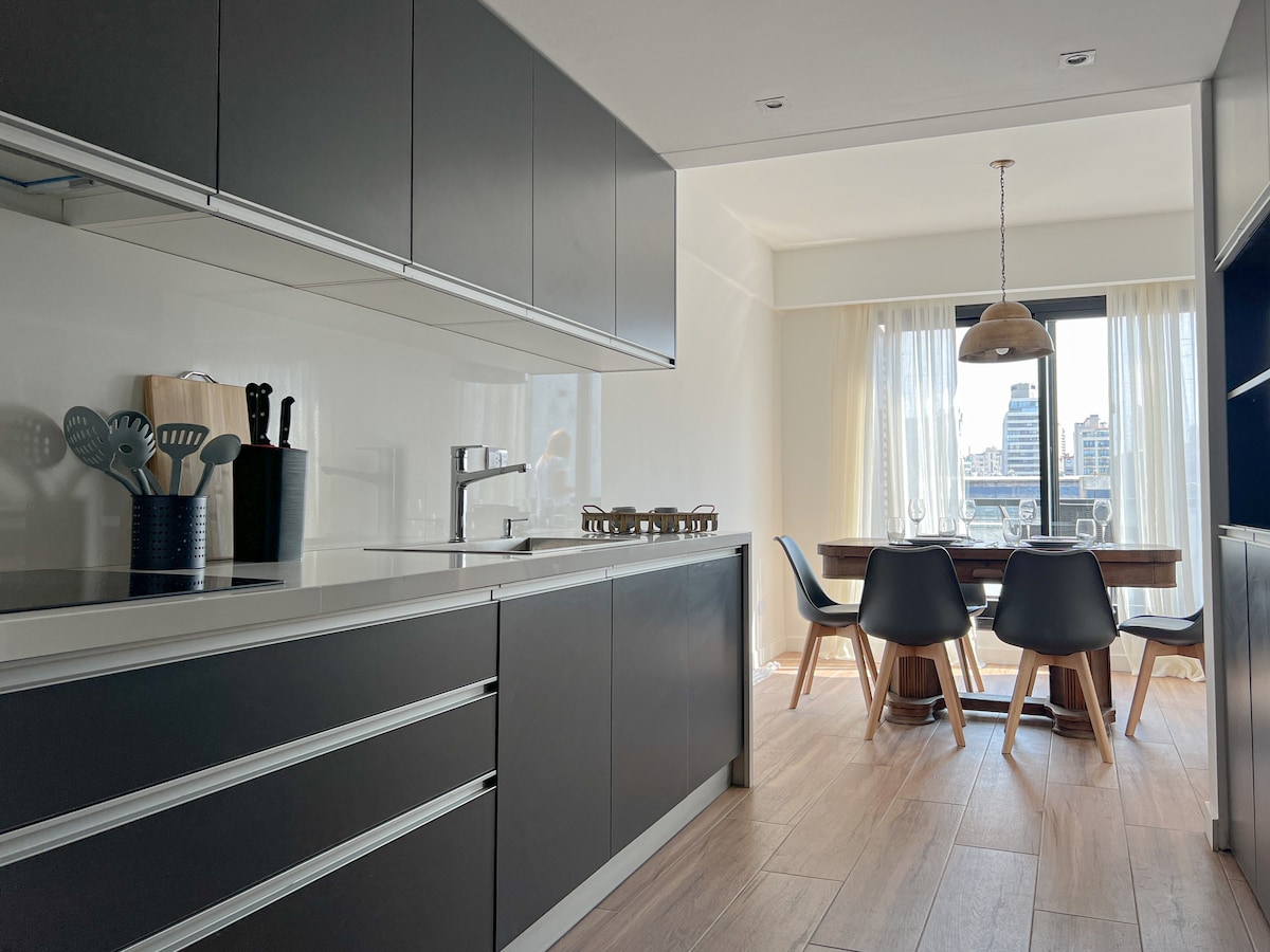Brand-new luxury apartment in a new building, fully equipped for short or long stays. Located in the best area of Recoleta, the most European-style neighborhood in the city, chosen by locals and visitors alike. Close to Recoleta Mall, Plaza Francia, and the Fine Arts Museum. Features an en-suite bedroom (king bed or twin beds), guest toilet, and double sofa bed in the living area. Ideal for couples, families, or small groups seeking comfort in a prime location.