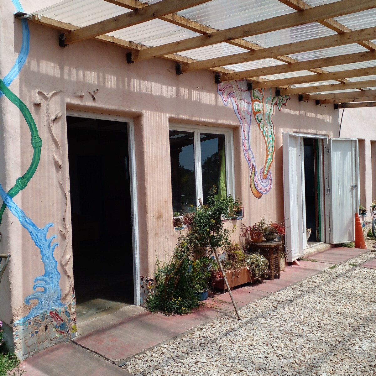 美麗的泥屋,文化住宅在一年中經營。 在自然環境中,街道遠離市區,距離大海8個街區。 房源面積為75平方米,與文化大廳共用一面牆,這裡有藝術和運動活動,如健身、即興接觸和瑜伽,以及一些早期音樂會、劇院和馬戲團表演。 此體驗讓您有機會與當地人和熱愛文化的旅客見面和分享。