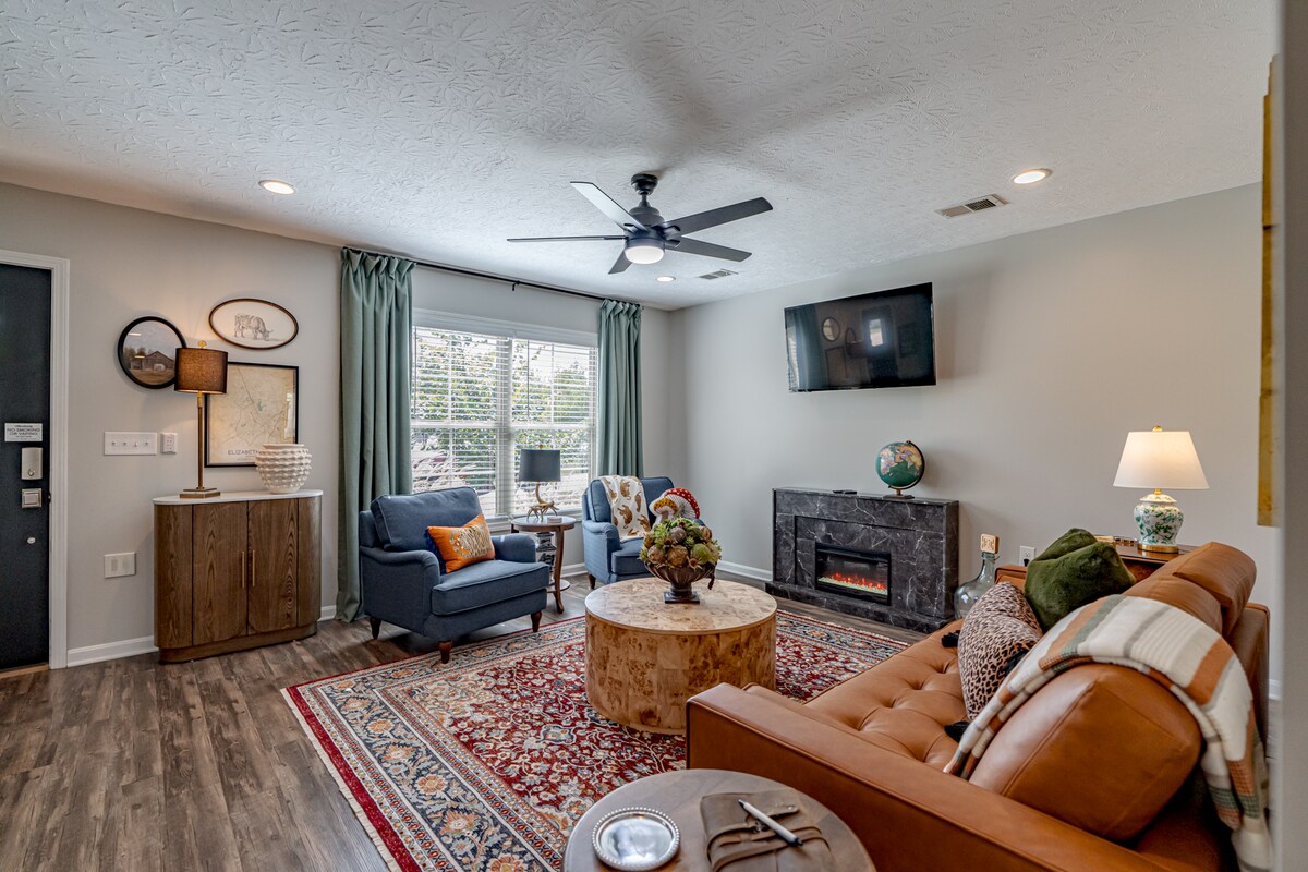 入住這間新裝修的中心位置房源,以熊為主題,靠近伊麗莎白鎮的所有設施。獨特的設備與服務,與任何體驗都不同,包括:1Gb光纖WiFi、55英寸QLED電視、帶煙霧和一氧化碳偵測器的Nest Thermostat、LoveSac Sactional和LoveSac SuperSac創造了「:Bear Chair」、Keurig D-Duo咖啡、高級治療品牌床墊。全套洗衣設施、飛輪健身單車、Weber天然氣烤架和戶外座位區。包括洗衣設施