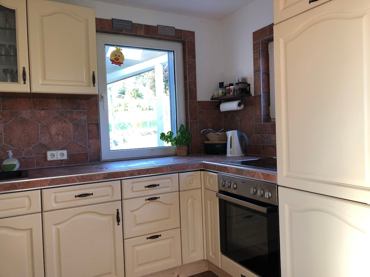 您將入住我的房子,這是一個帶有浴室和小廚房的獨立公寓,位於外城牆的安靜位置。廚房設備包括全自動咖啡機、微波爐、多功能電磁爐和帶冷凍隔層的冰箱,以及最多可供 6 人使用的餐具。 舒適現代的度假公寓位於一樓,並有自己的花園通道。