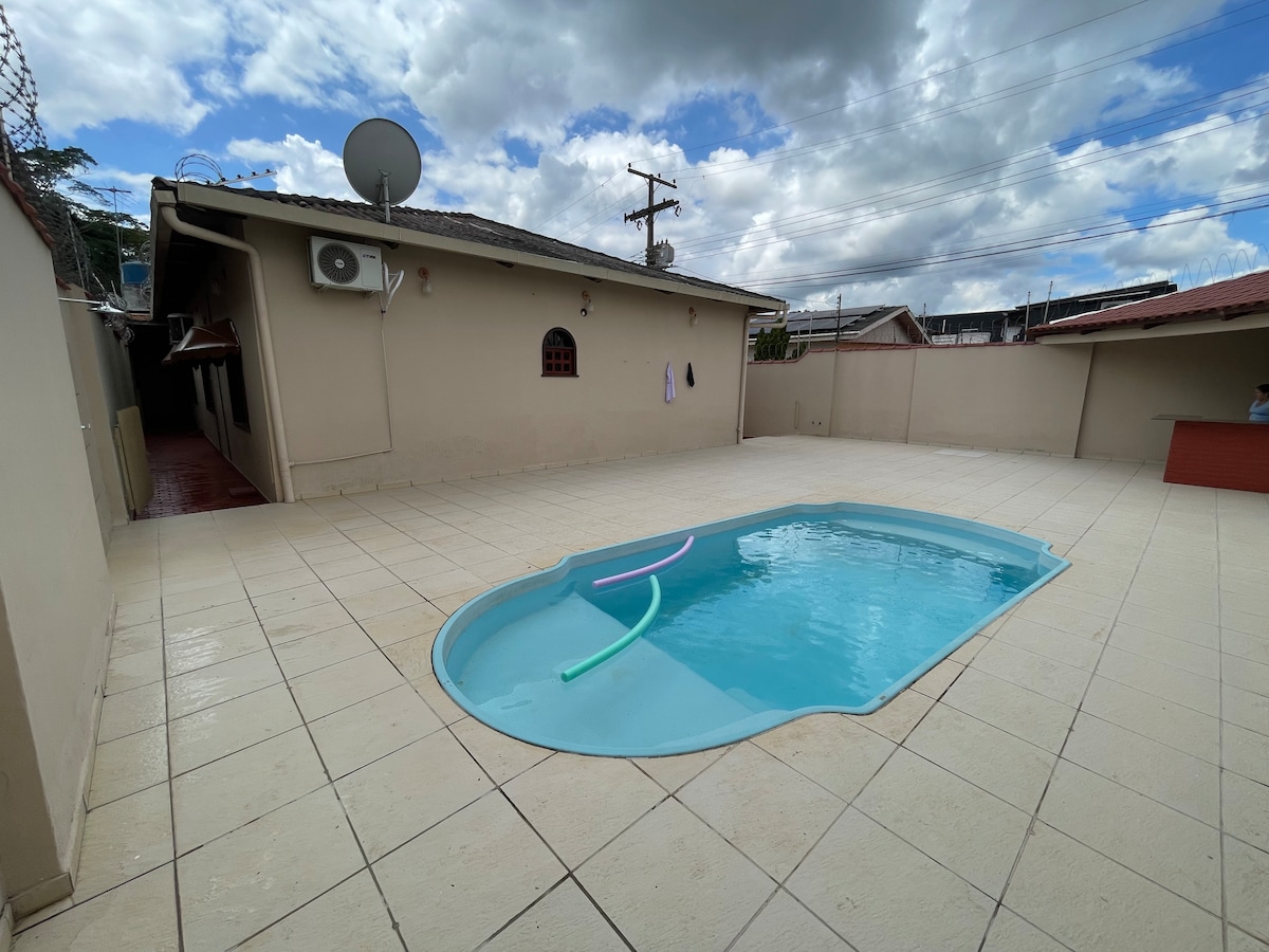 Leve toda a família a este ótimo lugar com muito espaço para se divertir. Próximo a supermercados, farmácias, açougues, mercearia, horto florestal, 5 minutos do pronto socorro. Casa completa com muito espaço, área de lazer, área de serviço com maquina de lavar, duas suítes, sala de estar/jantar, cozinha espaçosa com fogão e geladeira, tv, sofá, camas king size confortáveis em uma casa bem cuidada.