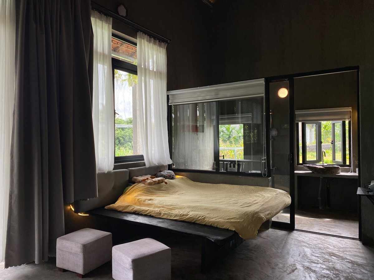 沒有霧霾,沒有汽車聲音–只有鳥鳴聲、陽光穿過樹冠和完美的早晨。 一個足夠靠近,方便前往的地方,有足夠的空間暫時遠離城市,放慢腳步,深呼吸。 這間鄉村木屋位於綠色花園中,有許多綠樹和不同的水果(菠蘿蜜、檸檬、椰子、酪梨、榴蓮、芒果、馬卡...)完全有機。 根據季節的不同,你可以在現場採摘水果並享用,感受大自然的甜美。