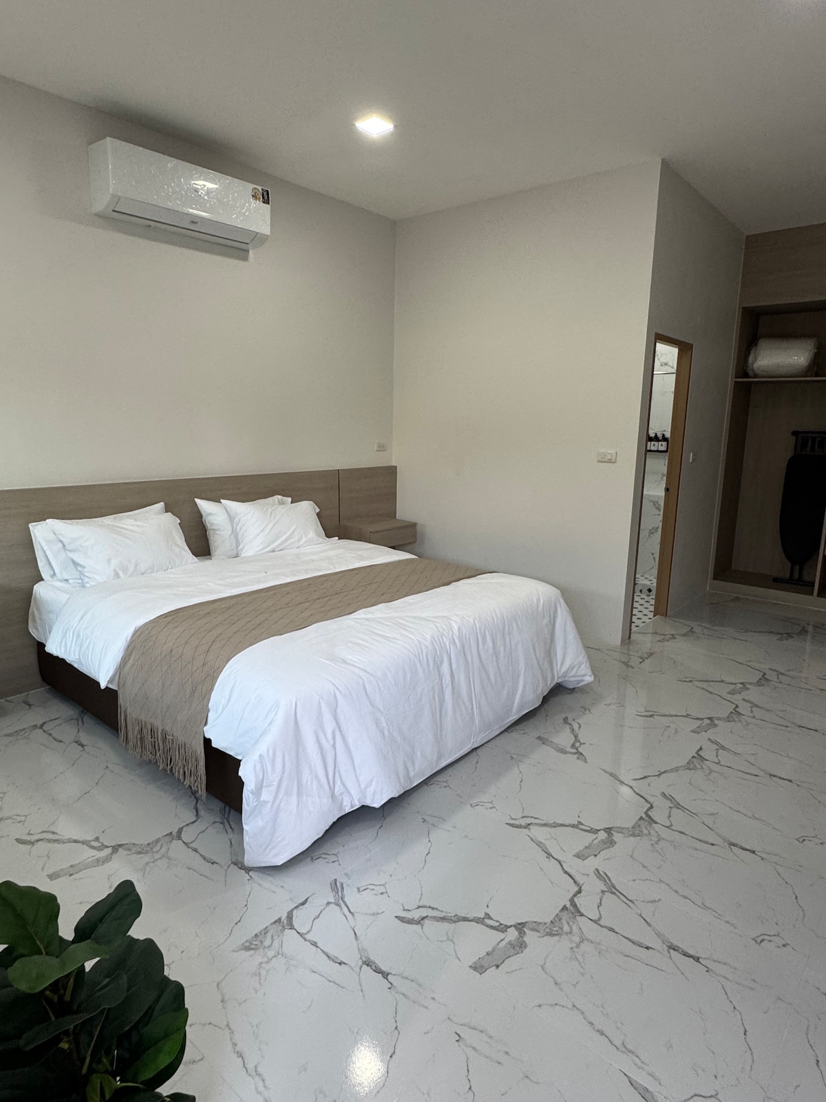 每日/月租# Buriram House #大型獨棟房屋 房源詳情 -大型獨立房屋,寬敞的區域,全程有人值守。 -4間臥室、3間浴室、1間大廳、1間廚房、4個停車位 -房子前面有非常好的微風。 -房子裡的家具各處都有空調、電視、冰箱、牀、牀墊、沙發牀。