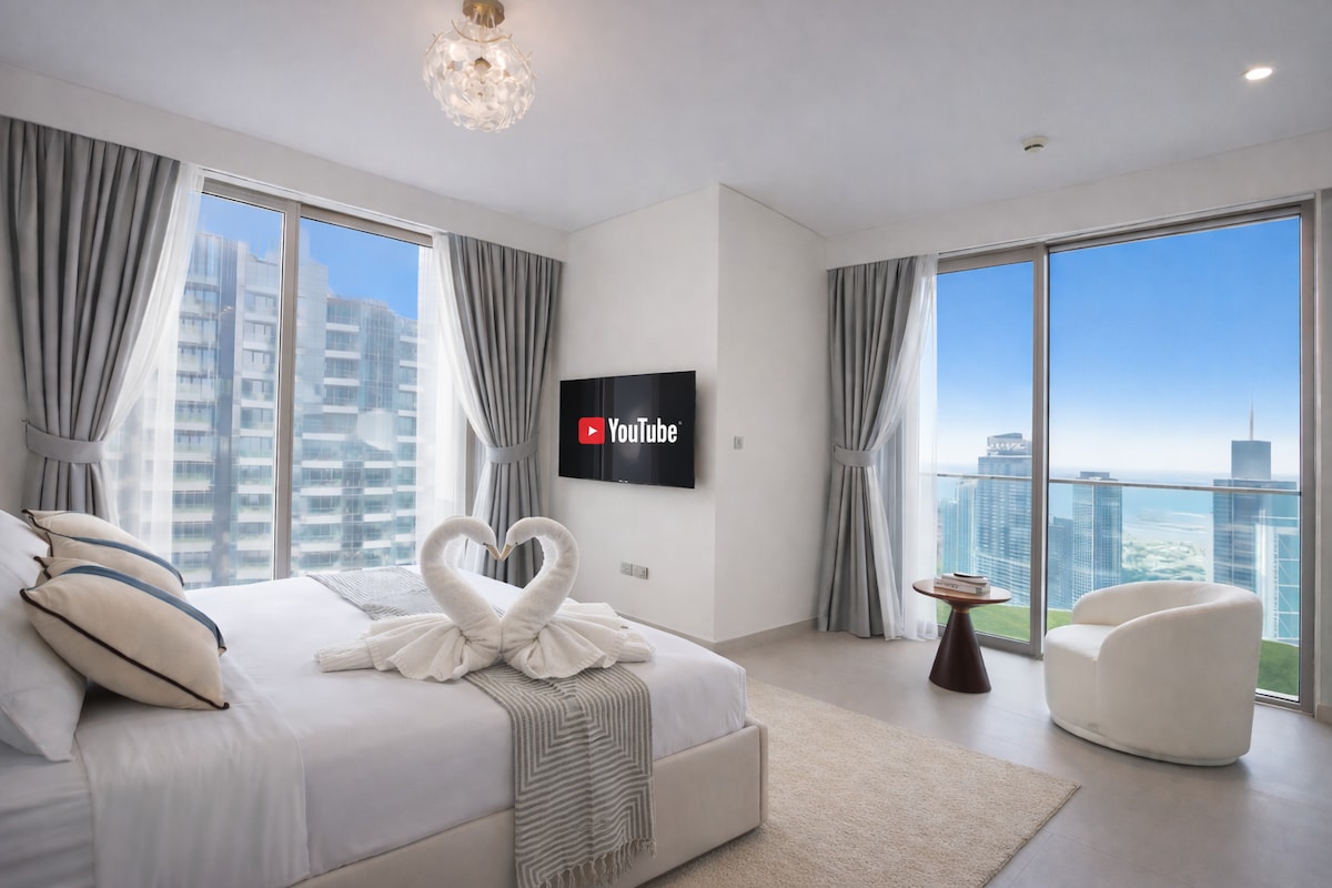 高級公寓,可欣賞到令人驚嘆的哈利法塔(Burj Khalifa)和部分噴泉景觀。第一排房源位於杜拜市中心,毗鄰哈利法塔,距離杜拜歌劇院100公尺,距離噴泉/杜拜購物中心200公尺。這是唯一一棟有直達地鐵和商場連接橋的建築。提供風景優美的游泳池、健身房和網球場。公寓配有私人助理、WiFi、配有Netflix的智慧電視、加大雙人床和沙發床。 祝您在杜拜旅途愉快。