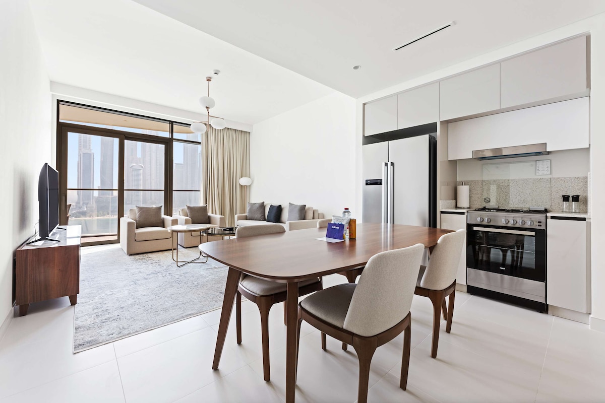Burj Khalifa & 噴泉景觀的高級公寓