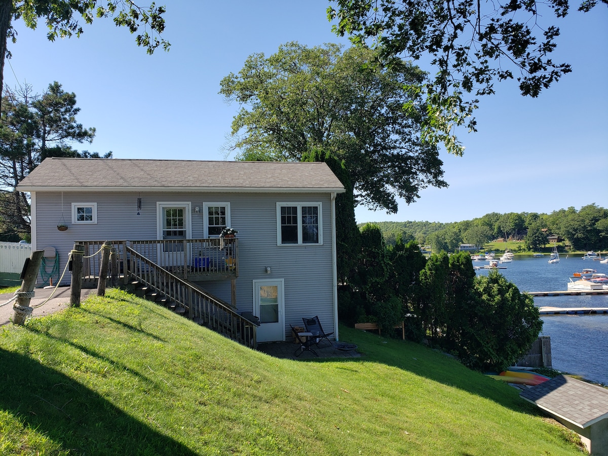 我們的房客說: 「這個地方很漂亮。 一塵不染的房源,景色令人難以置信。 就在水面上。 如果我能留下六顆星,我會的。」Robert 「房源非常乾淨,讓我們在這段時間感到非常舒適。 檢查是一個微風。 光是景觀就足以讓我們的短途旅行值得一去。」Gabriella 釣魚、劃獨木舟、在碼頭外遊泳。 冰魚,冬季滑冰 靠近滑雪區 皮劃艇 船塢空間(需額外收費) ,距離船隻2分鐘路程