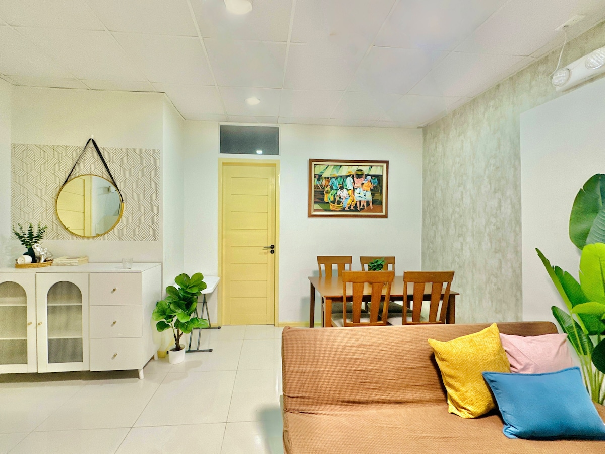 入住這間寬敞又安靜的公寓,從陽臺上可欣賞全景城市景觀,忘卻所有心中的煩惱。位於中岩採石場,靠近旅遊景點。距離伯納姆公園(Burnham Park)、路德洞(Lourdes Grotto)和米拉多爾文化生態公園(Mirador Heritage and Eco Park)幾分鐘路程。公共交通非常便利。只需在房子前面搭乘吉普尼或計程車。我們有安全的停車位。PLDT光纖WiFi連線,供在家工作的員工使用。60 吋智慧電視、配備家具的客廳/廚房/乾淨的床單/毛巾。