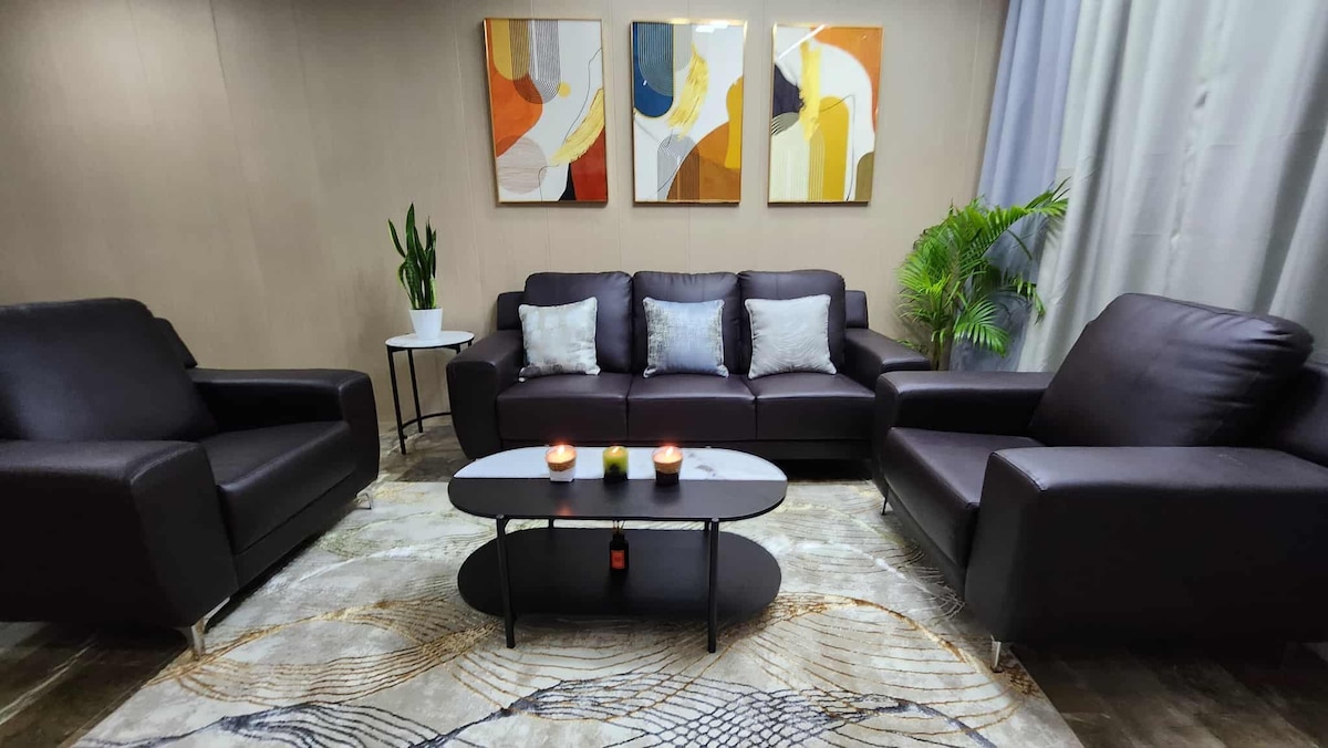 為8-10位房客的團體度過下一個碧瑤假期,讓您的全新3臥室/2浴室寬敞頂層公寓成為您放鬆的家外之家。 便利設備 ➡超高速WiFi ➡智慧電視 ➡JBL派對盒+麥克風卡拉OK樂趣 ➡按摩椅 ➡電腦桌(非常適合數位遊牧民族) ➡設備齊全的廚房 ➡陽台,景色值得拍照 *步行2分鐘即可抵達吉普尼線;開車10分鐘即可抵達伯納姆公園;開車12分鐘即可抵達Session Road *單位位於4樓;沒有電梯,但有標準樓梯。