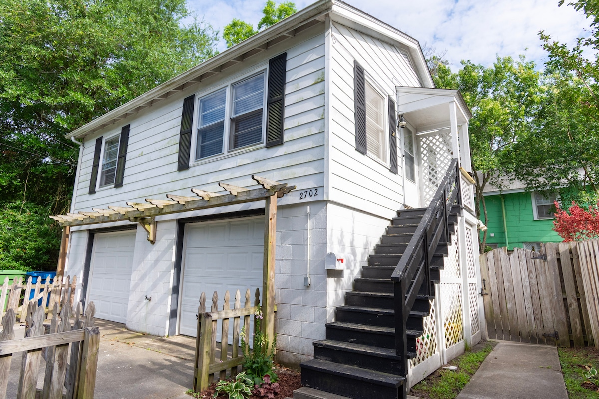 寵物費:25美元 提前入住/延遲退房:25美元 對「迷你屋」生活感興趣嗎?鳥巢是一個舒適的閣樓空間,變成了一個公寓!天花板範圍從6英尺5英寸開始,在屋頂線上下降!房源側面有私人入口。距離市中心河濱步道1英里,距離萊特斯維爾海灘8英里,位於市中心/市中心區域。歷史悠久的市場街(Market Street)在2個街區外,前往市中心和海灘。