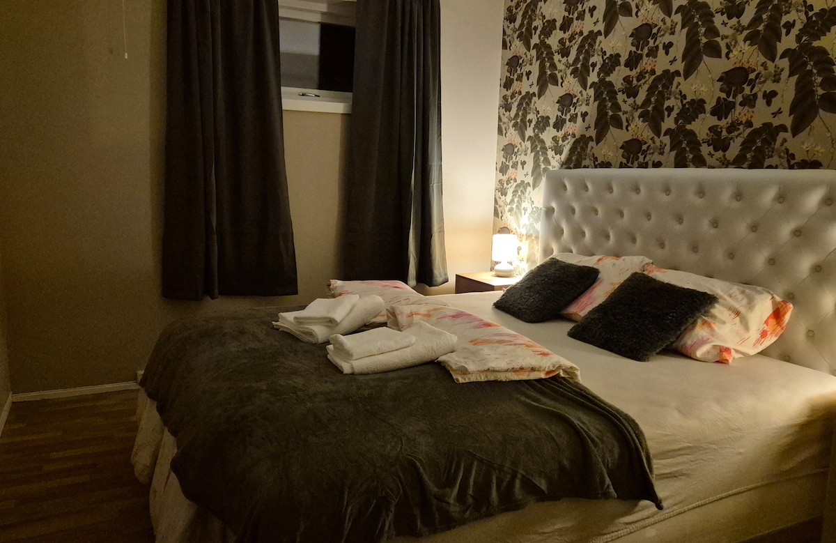 您想入住美麗的偏遠地方,同時仍與城市相連嗎?Grøtfjord距離特羅姆瑟(Tromsø)僅40分鐘車程。靠近一些最迷人的山脈、峽灣、滑雪和攀岩區域。大型公寓,配有1間臥室,配有加大雙人床和一張雙層床。客廳裡有一張折疊睡床。包括所有設備、毛巾和木柴!需要開車前往Grøtfjord。房東住在房子的另一個區域。