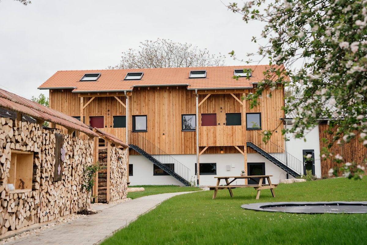 一樓的大型公寓,位於安靜的住宅區,配有陽臺、Wi-Fi和智慧電視。 一樓和二樓各有一間公寓。 廚房配有爐台、冰箱和冰櫃。 Playground附近的觀光 2.5公里內有許多餐廳、超市、咖啡館、麵包店。 位於奧格斯堡、貢茨堡和多瑙維爾特之間的三角形,位置方便。 是許多遊覽選擇的理想起點(例如:樂高樂園、天際公園、城市遊覽)。 禁止攜帶寵物、舉辦派對和吸煙!