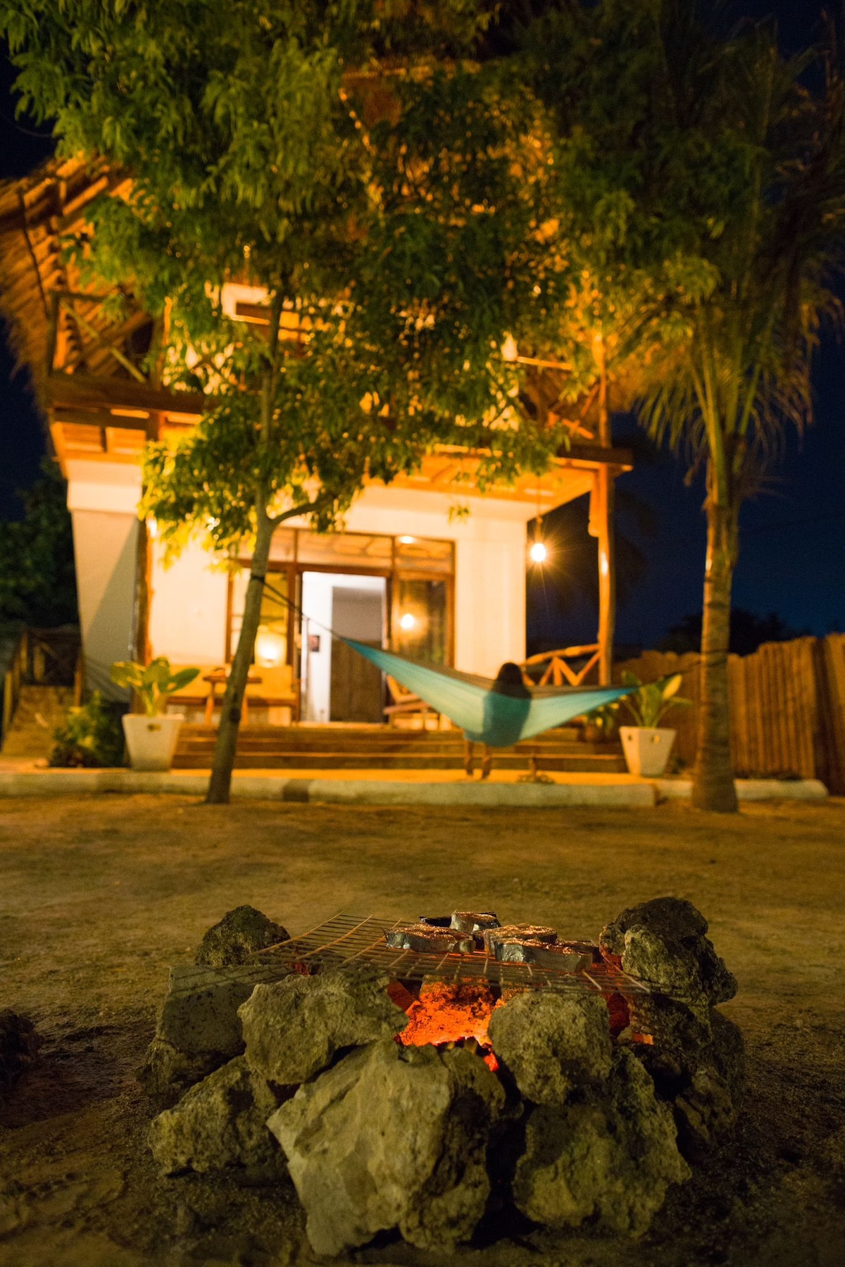 Vergiss deine Sorgen und entspanne zu zweit, mit Freunden oder mit der ganzen Familie in dieser friedlichen und ruhigen Unterkunft am Dorfrand von Bwejuu. Das Haus liegt auf einer kleinen Anhöhe und verfügt über einen herrlichen Meerblick. Der traumhafte, noch sehr unberührte und authentische Bwejuu Strand ist nur 5 Gehminuten entfernt, genau so wie die Hauptstraße mit einigen kleinen Shops und Streetfood Ständen. Paje Stadt erreichst du in weniger als 10 Min mit dem Auto/Taxi/Bus.