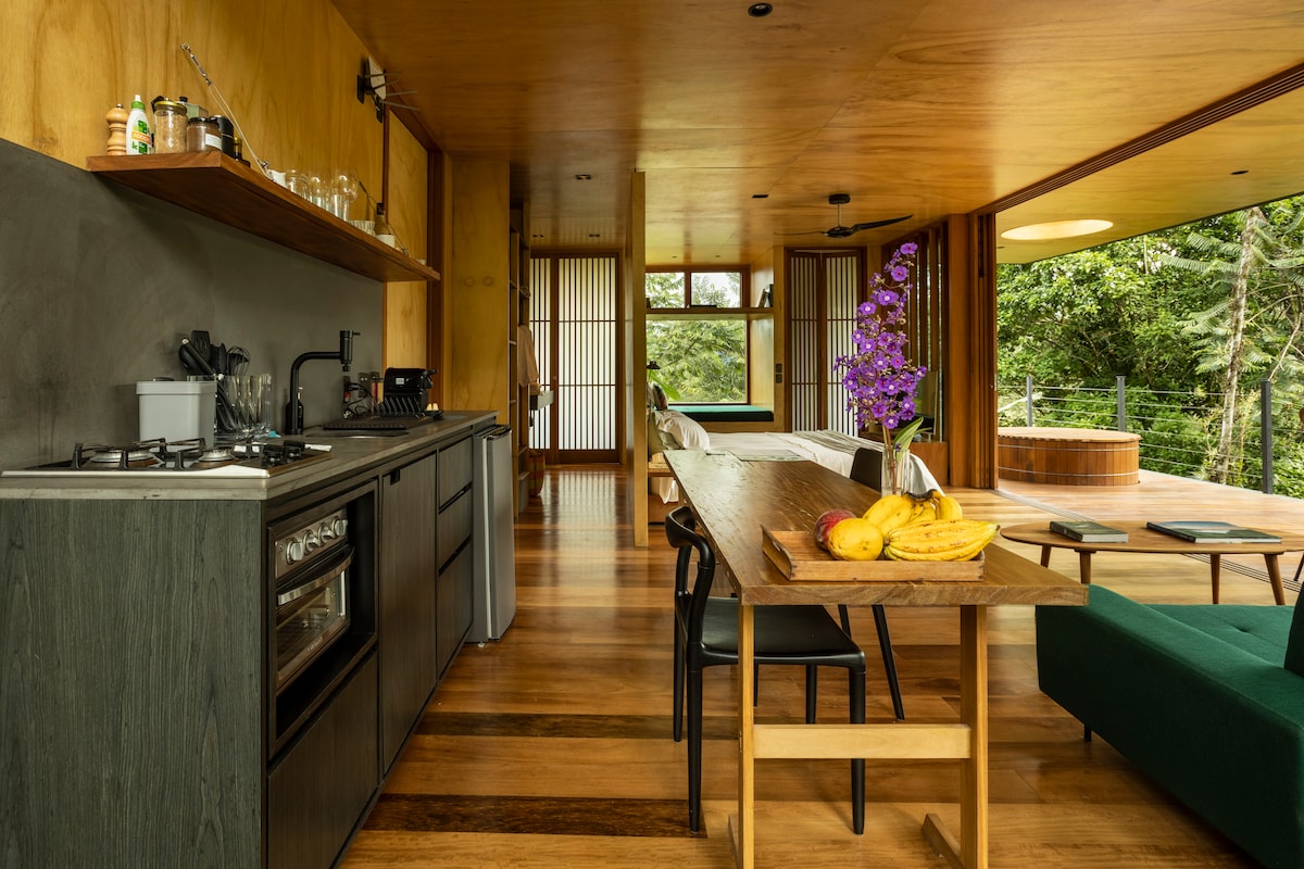這座新小木屋位於叢林和Fazenda Ressaca區域中,適合欣賞優秀設計、尋找寧靜、舒適和與大自然深刻接觸的人。 這間小木屋是一個舒適的茧,讓您體驗和連接超過70萬平方公尺的大西洋雨林保護區,為您帶來難忘的放鬆和歡樂體驗。 此外,每日客房清潔和新鮮的當地農產品(有些來自農場)供您準備早餐。