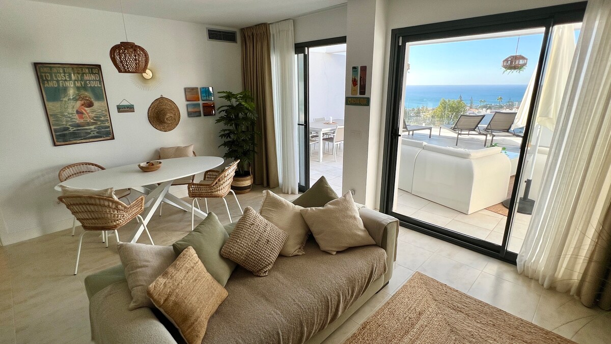 Moderno ático de tres habitaciones, dos baños y una gran terraza con impresionantes vistas al mar. Cuenta con plaza de aparcamiento, wifi y aire acondicionado. Situado en la tranquila localidad de Manilva a escasos minutos en coche de la playa y zonas de ocio con bares y restaurantes donde relajarse y disfrutar de unas maravillosas vacaciones en familia y/o amigos. Una escapada perfecta que combina el encanto costero con el confort moderno: el lugar de vacaciones perfecto en la Costa del Sol.
